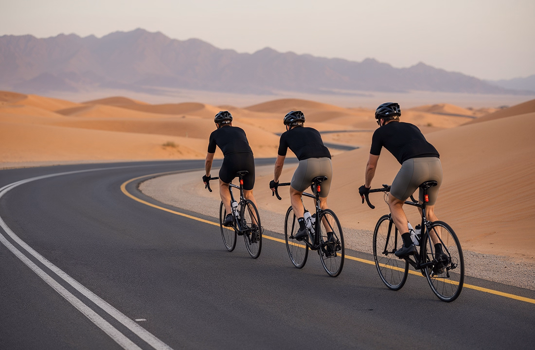The Sharjah cycling track scene has been elevated thanks to this 6.6km professional circuit. It’s shaded, green, and feels like a total escape from the typical city streets of Dubai. For these transitional rides, our Thermal LS Jerseys for men and Thermal LS Jerseys for women offer the perfect balance of insulation and breathability.